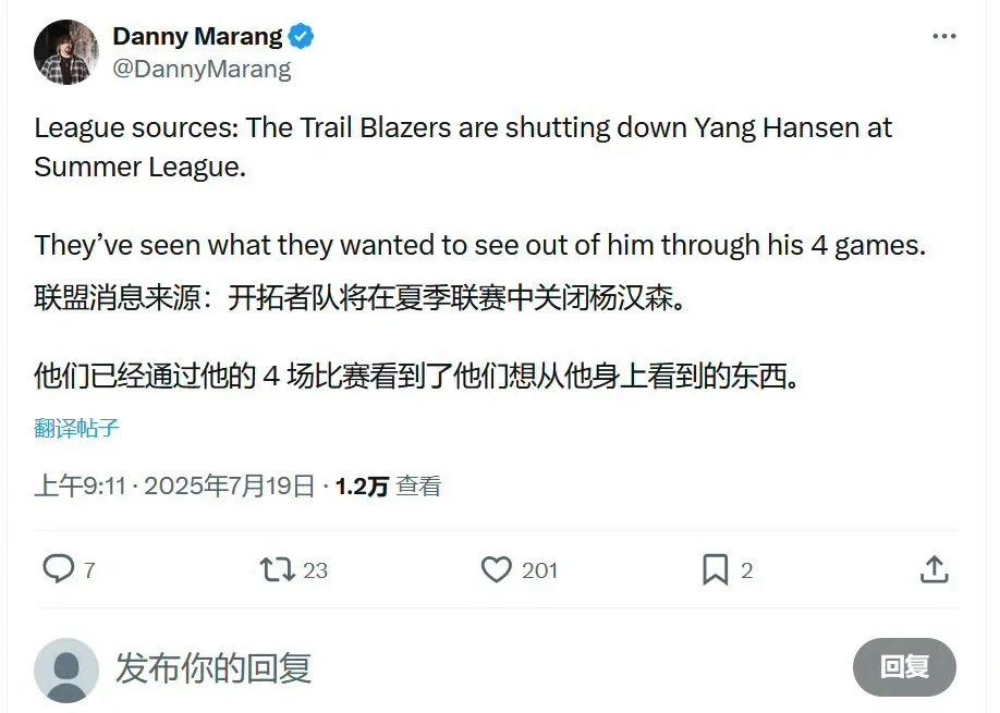 却因为顾虑试训时被杨瀚森打爆而放弃